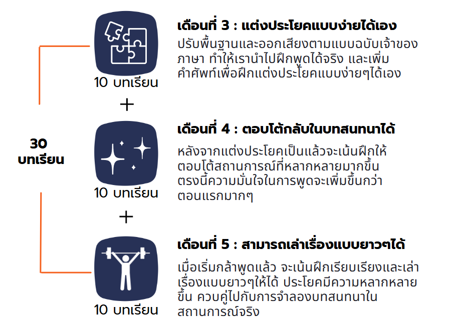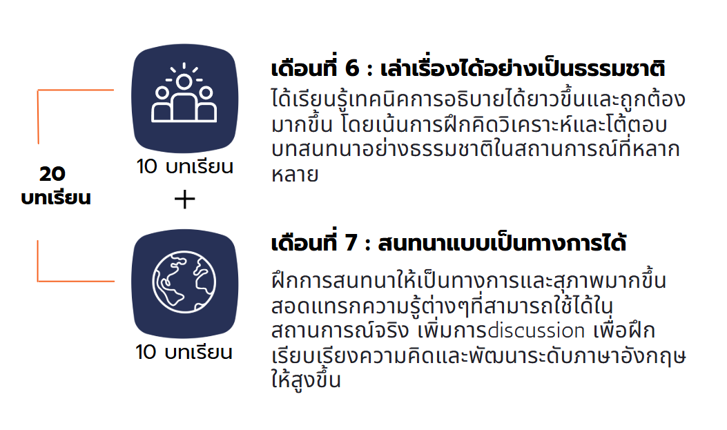 - ฝึกการเล่าเรื่องหรือพูดประโยคยาวๆในบทเรียนพิเศษ
